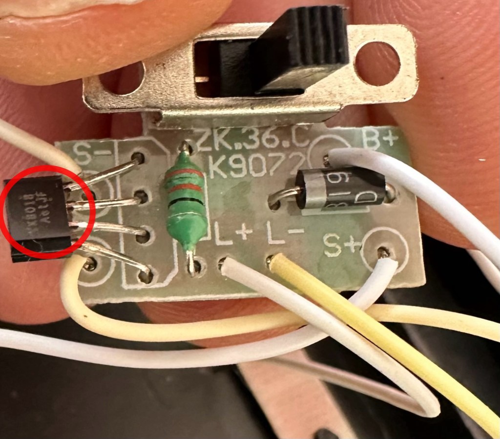 The circuit board only consists of three components and two out of the three test ok. The issue seems to be with the YX8018 controller, the small four legged component in the pictures below.