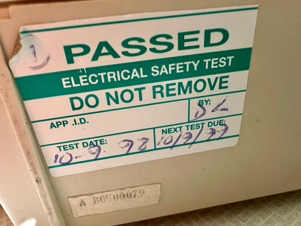 It’s arrived and apart from a little age yellowing it looks ok. There is a PAT testing sticker that says it was last electrically tested back in 1998 and is due a retest in 1999. This corresponds with my date estimate of mid 90s.