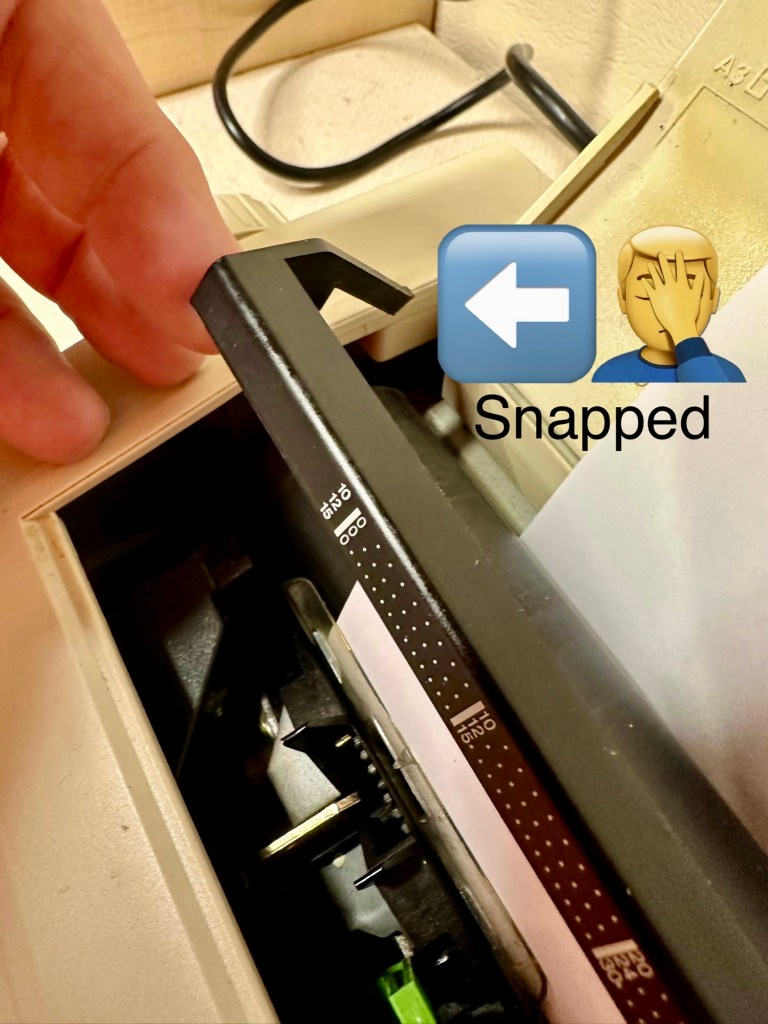 I will retest and renew the safety checks when I’m finished working on it. I have noticed that the paper bail/release rail is broken on the left hand side so I will have to add that to the repairs, this shouldn’t be a major concern.