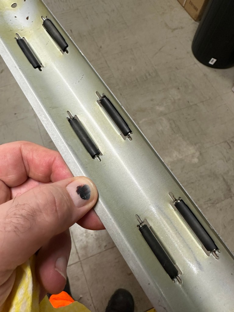Cable restraint screwed to base to prevent strain on internal wires in and around the transformer bay.