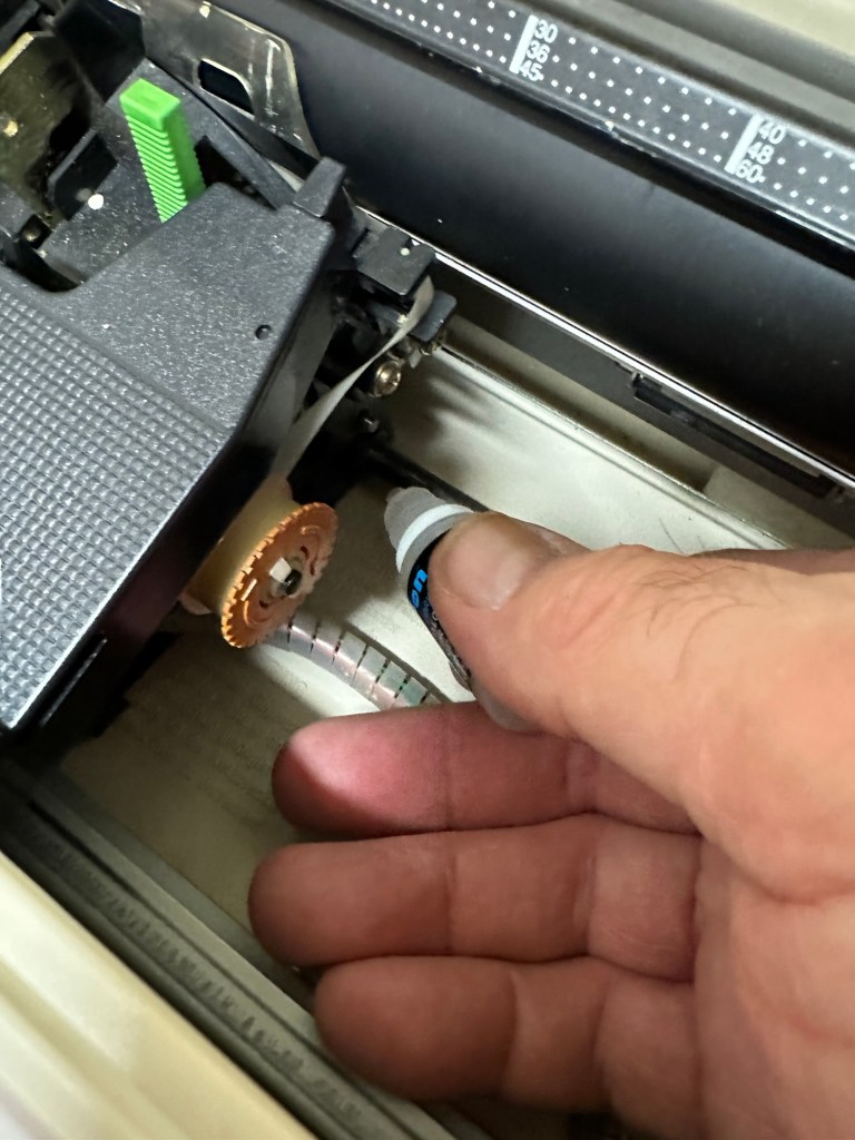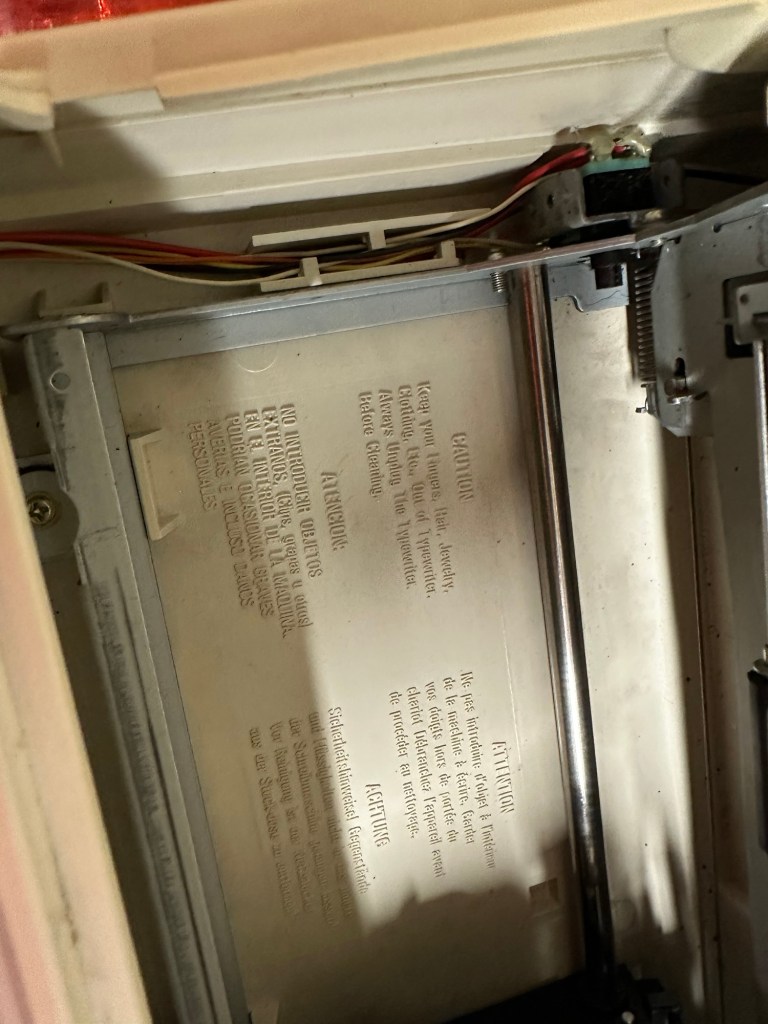 Before I took the roller out to get to the paper bail I did start the machine up. Everything went as expected and when I tried to type I was getting some weird reactions to the keys I was pushing. All kinds of characters were appearing.