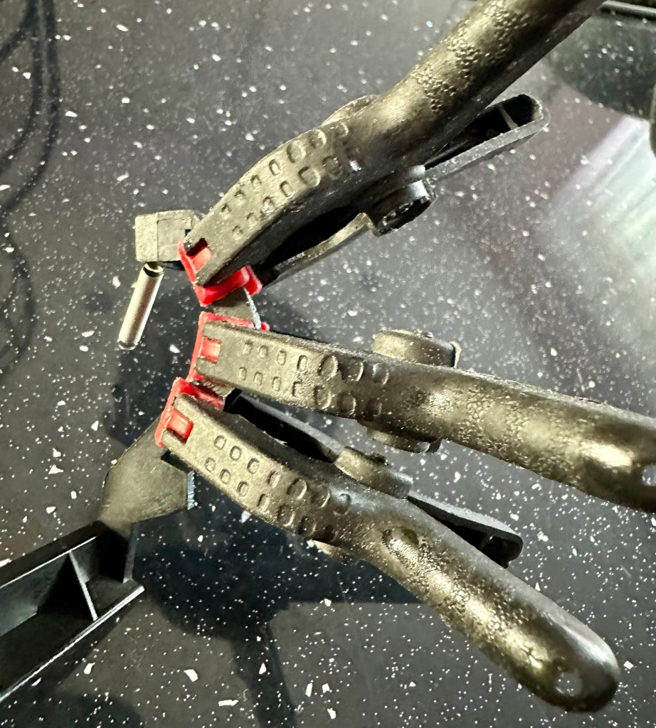 Right it’s straight onto the paper bail to try and fix the snapped end. Firstly I’m just going to use some superglue to get it in place. When this is dry I’m going to create two “Doublers”, place one either side of the damaged part and glue these in place to create a stronger repair and to add some stability to this area.