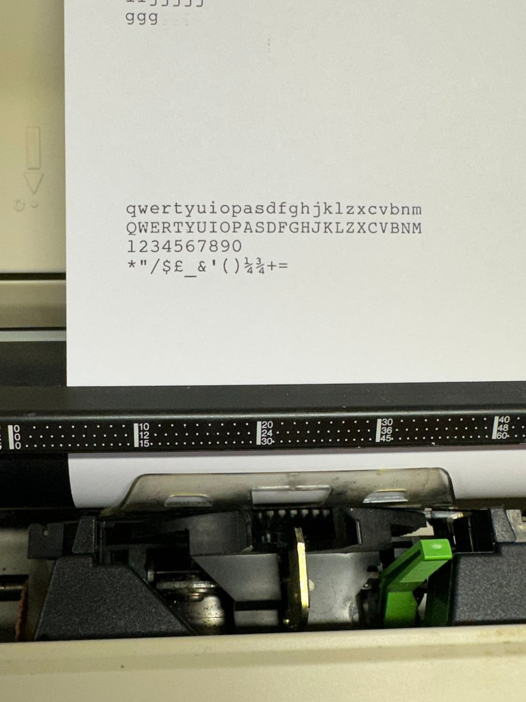 I checked the daisy wheel and there was a click. It wasn’t sitting right. I reset the machine using the two reset buttons and the machine then went through its reset programme, pretty much the same effect as turning it off and on again. (Not much changes in the way of tech there then)