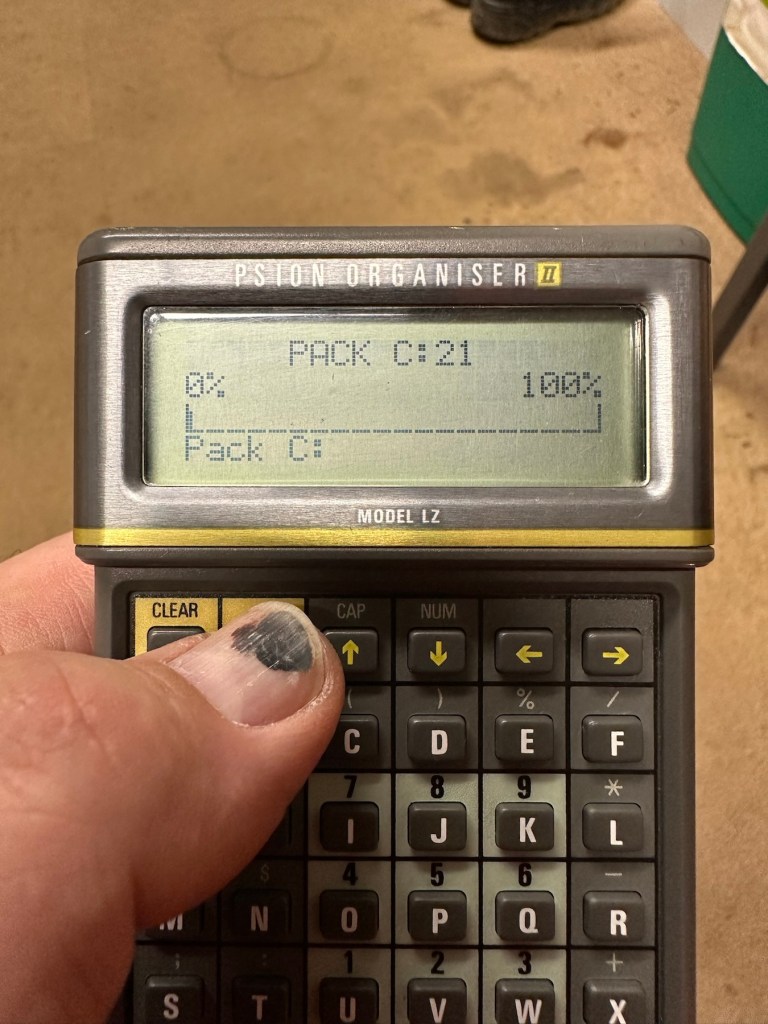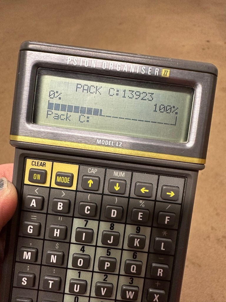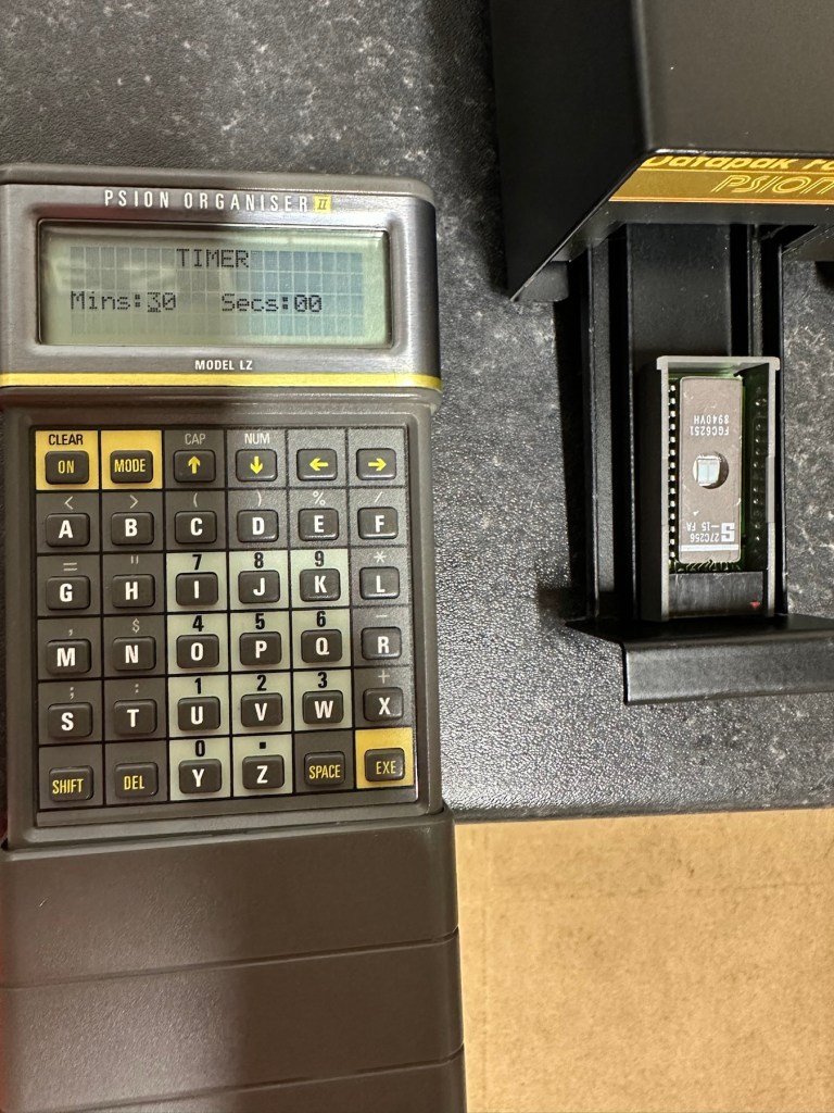 Everything seems fine I now just need to place a Datapak inside to see if the format process works. Also it’s a good time to check if the 30 minute timer is working. No time like the present, so I’ve found a suitable candidate and what better way to do the 30 minute countdown than with a Psion organiser I just happen to have hanging around. Here goes 🤞