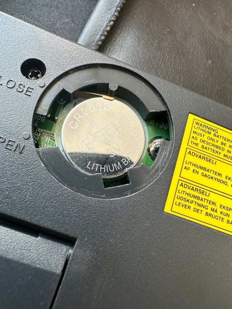 The lithium battery is an old CMOS type battery, a CR2032 coin battery. This is the battery that keeps the info in the system when you turn it off. I thought I’d run this through the multimeter and was surprised with the voltage I saw, the battery seemed fine to me at 2.8v, so I replaced it with a new one measuring 3.4v. And the issue came up again…..head scratching time!