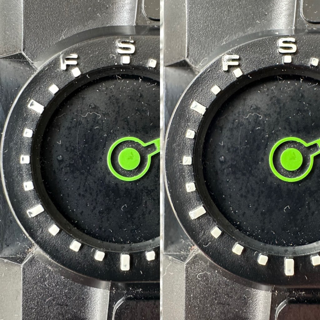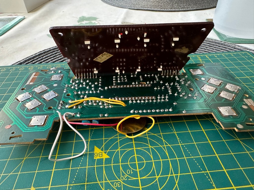 Whilst I’m waiting for everything to dry my attention turns to the board. A quick inspection reveals that all tracks are in a fair condition and we don’t need to rescue anything there. The buttons on either end have been taken apart and all cleaned with IPA, I’ve also used the same method to clean the switches and the board and after checking continuity all contacts are working as they should.