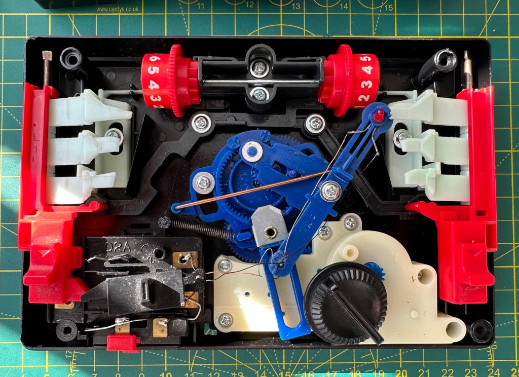 This purchase kind of excites me as it was a couple of years before games started to go truly digital. The year was 1977 some 48 yrs ago from the current time of writing. It was labelled as a digital game however that was a bit of a misnomer, it was more an electro mechanical game as the battery source in this unit had only one purpose, to power the LED light source. The main guts of the unit are mechanical being powered by a wind up motor that does the majority of the work. However the mechanics within this unit are superb and it’s worth a look under the cover just to revel in its construction.