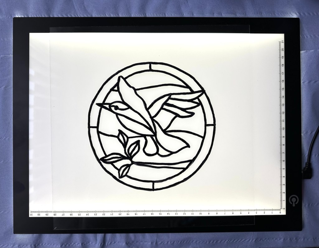In my first foray into this art medium, i chose what were to be two of my first templates. That post can be found here: Faux stained glass painting. This post covers what I will be doing with the second template and a slightly different approach to what I hope to achieve.