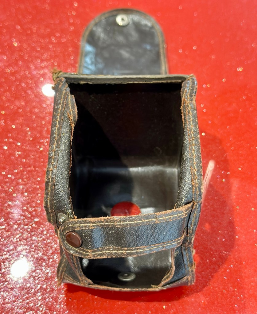 The case is leather and is very dry and brittle, it’s complete, so I may well look at revitalising this one just as I did to an old Kodak camera in this old post: Kodak Brownie reflex. If I do, I will cover its repair in the following section.