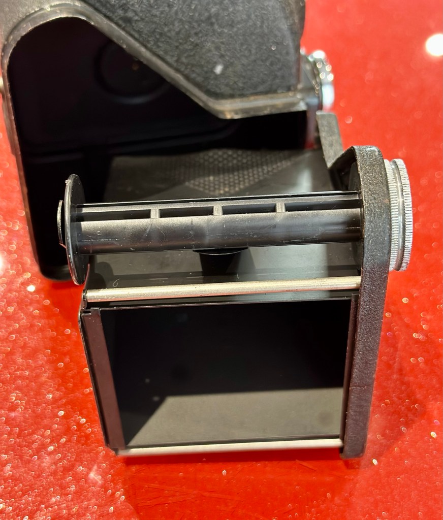 The mirror inside the viewfinder seems to have moved and will need reseating, all glass and mirrors appear quite foggy and need a good clean, all workings within the camera inside appear ok. Light seals appear ok but may well need replacing purely due to their age.