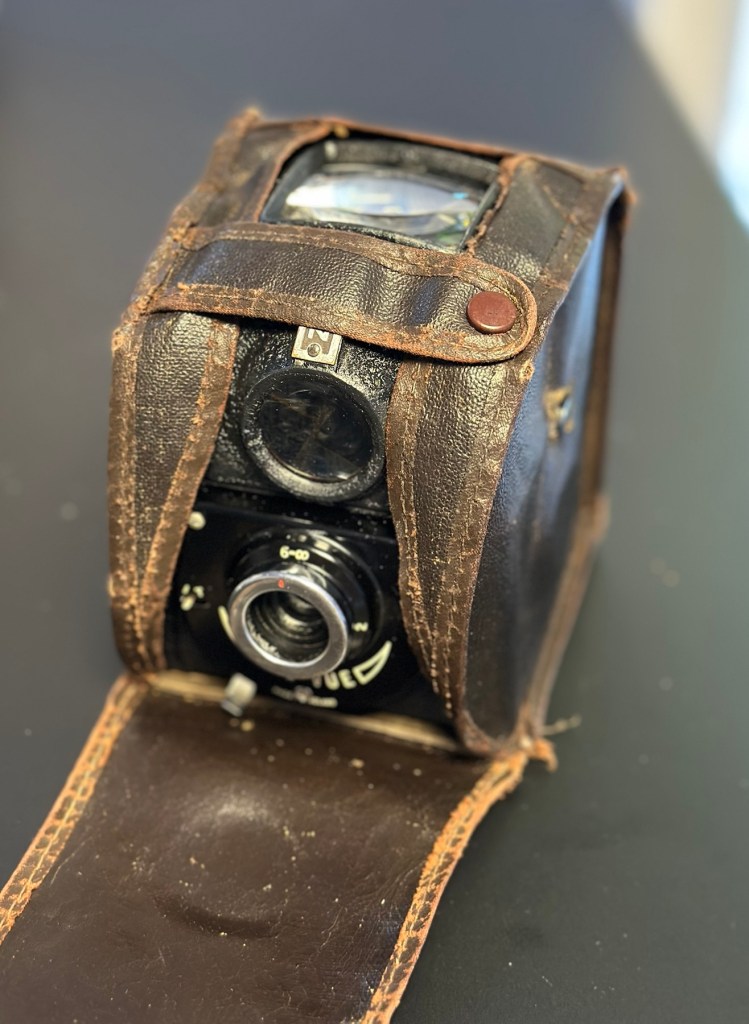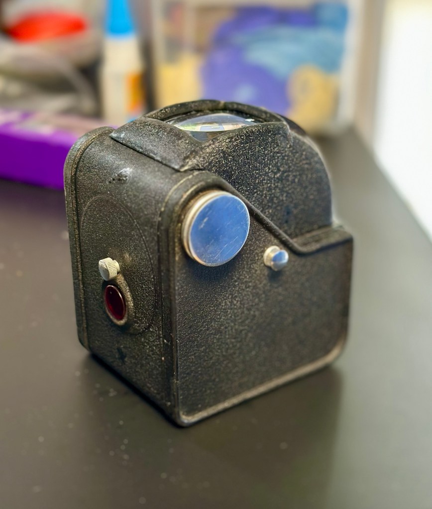 I obviously want to get it back into full working order. And want to do as sympathetic a restoration as possible. It’s a 120 roll film camera with a 6cm x 6cm frame inside, it was a cheap and cheerful camera of its day, sold as, “Easy, even for a child to use.”