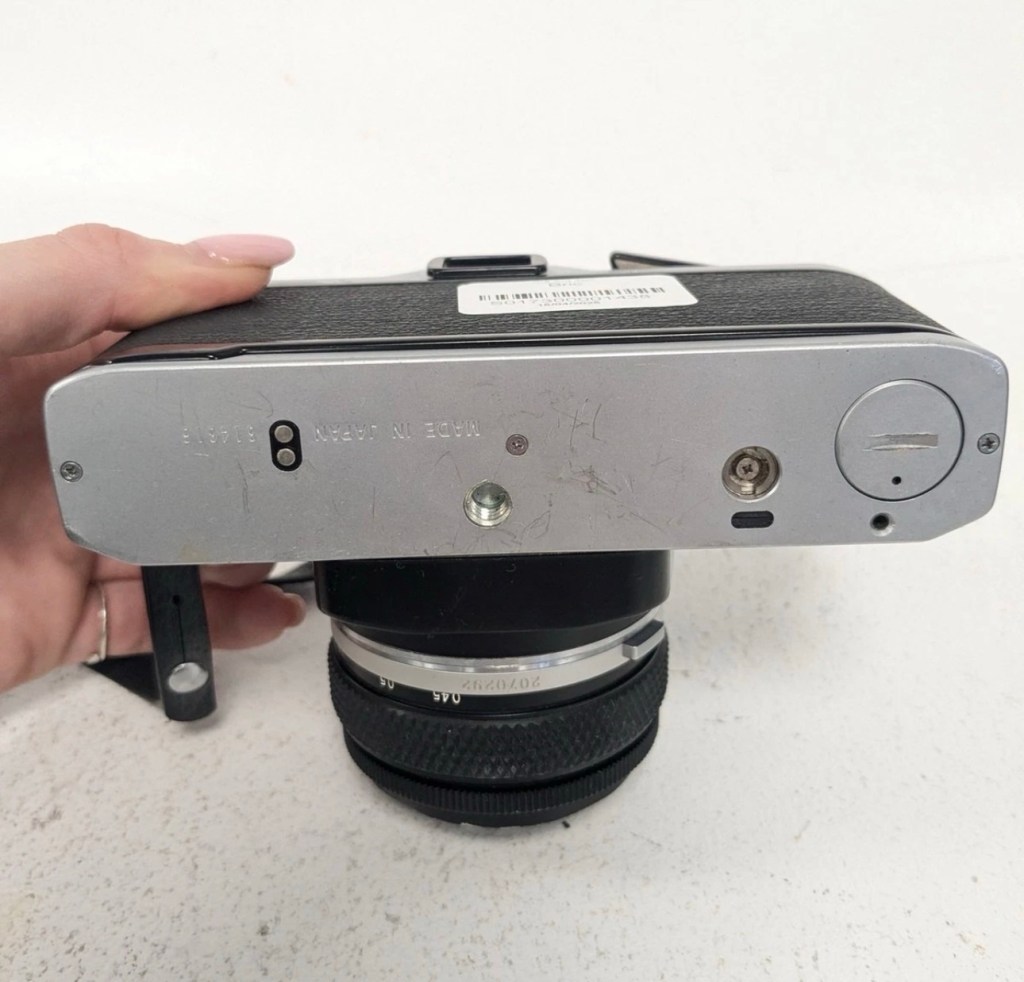 Again, cosmetically in good condition but missing the battery cover on the base. I was able to overcome this and load some batteries and had movement in the metering via the viewfinder. It’s quite dirty and the function dial on the top is jammed, I couldn’t get the shutter to fire. I suspect it needs a good CLA, and will make a good little project .