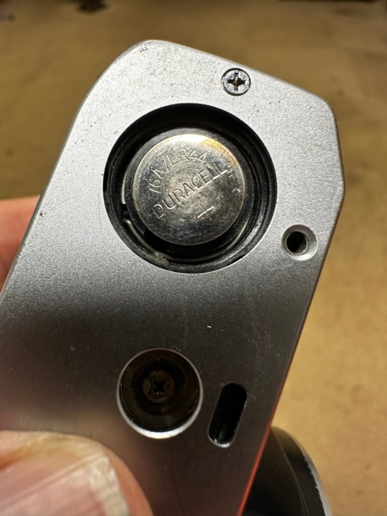 Straight home and I’ve found a couple of LR44 batteries that had a little more power than the old ones. In they go….and nothing. There is a check position on the main dial that should light up and a buzzer should sound to confirm that there is sufficient power, obviously there isn’t in this case. I run all the other LR44 batteries I have through a tester ( I had a packet of 12 ) and they all show as low power, they’ve died during storage. I then pop over the road to see my brother in law who always has a good supply of batteries and bingo, he has a couple of spare LR44s.