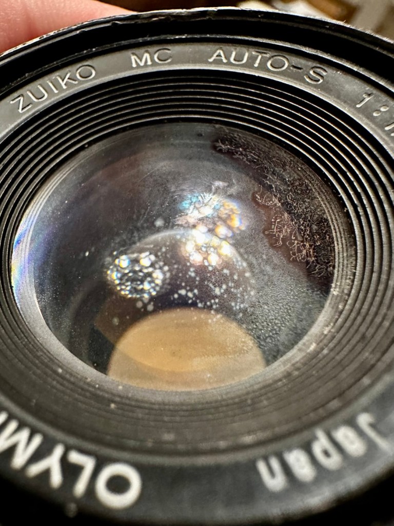 The original lens that was suffering with fungus has been dismantled and given a clean, however because the top two optics are a sealed assembly, guess what? The fungus is within the sealed section and is unable to be accessed. Therefore the lens will never be cured of this issue, it has been improved by cleaning the other optics but it’s not in anyway good enough to use with film in the camera, I will therefore use the old lens purely for testing purposes, it works fine for that and will be just fine for testing other Olympus equipment. In the meantime I have purchased two further OM 50mm std lenses, one is an earlier “Silver nose” model with a single lens protective coating whilst the other is a later production “Black” MC (Multi coated) model. Both are in an excellent clean condition conducive for film photography.