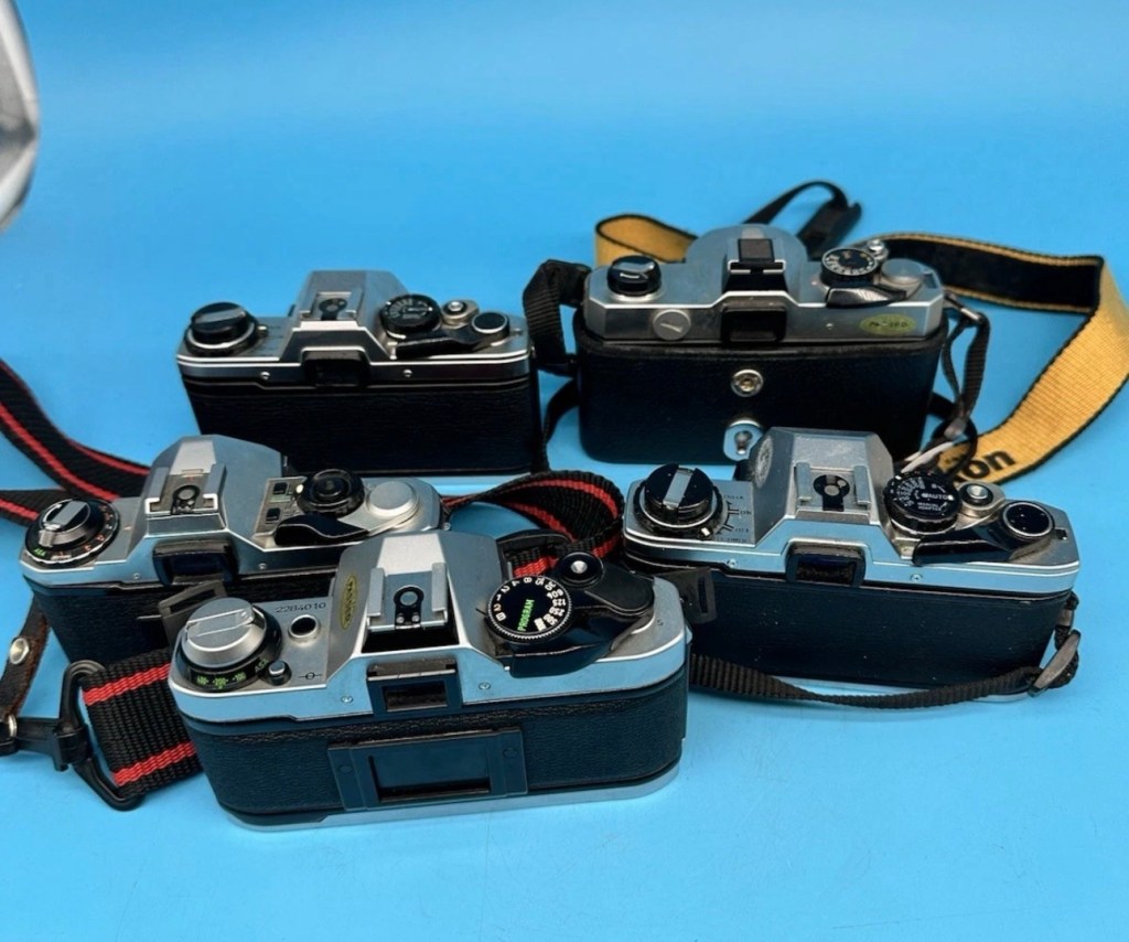 Canon ae-1 program, Olympus om10 x 2, Pentax me super, Fujica stx-1