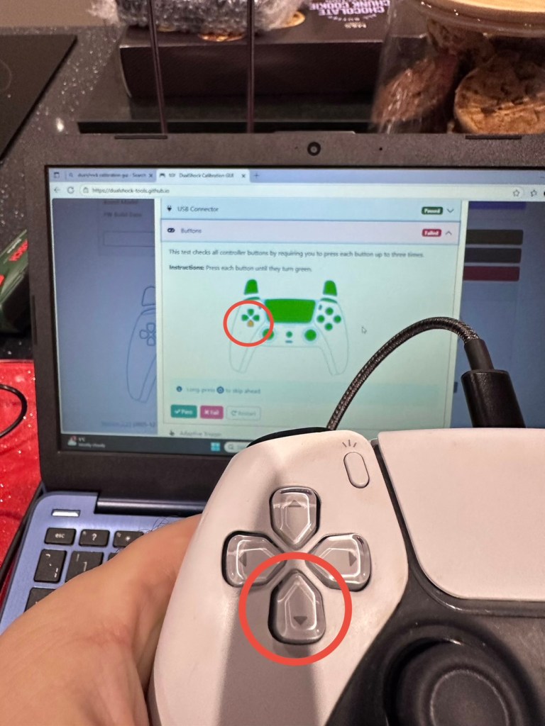 Now onto the second item, the white controller. I put this controller through the exact same testing protocol as the first one, all was going well until we got to the buttons section where this one failed. The down button on the left hand side of the controller is unresponsive, you can see this in the photos below