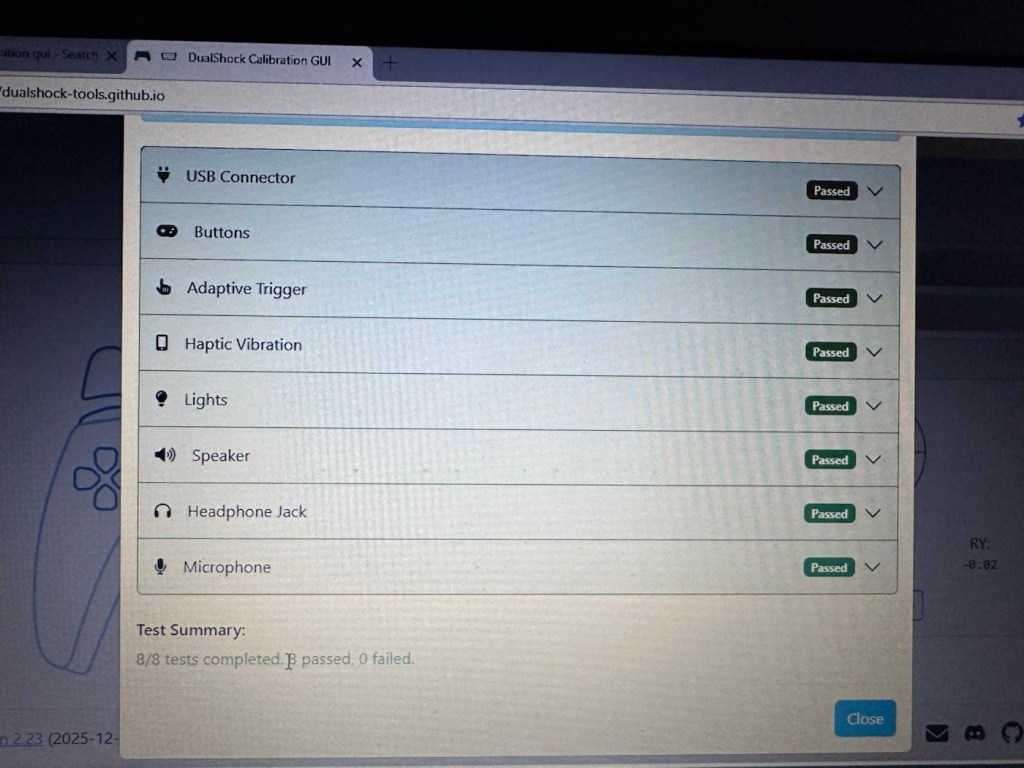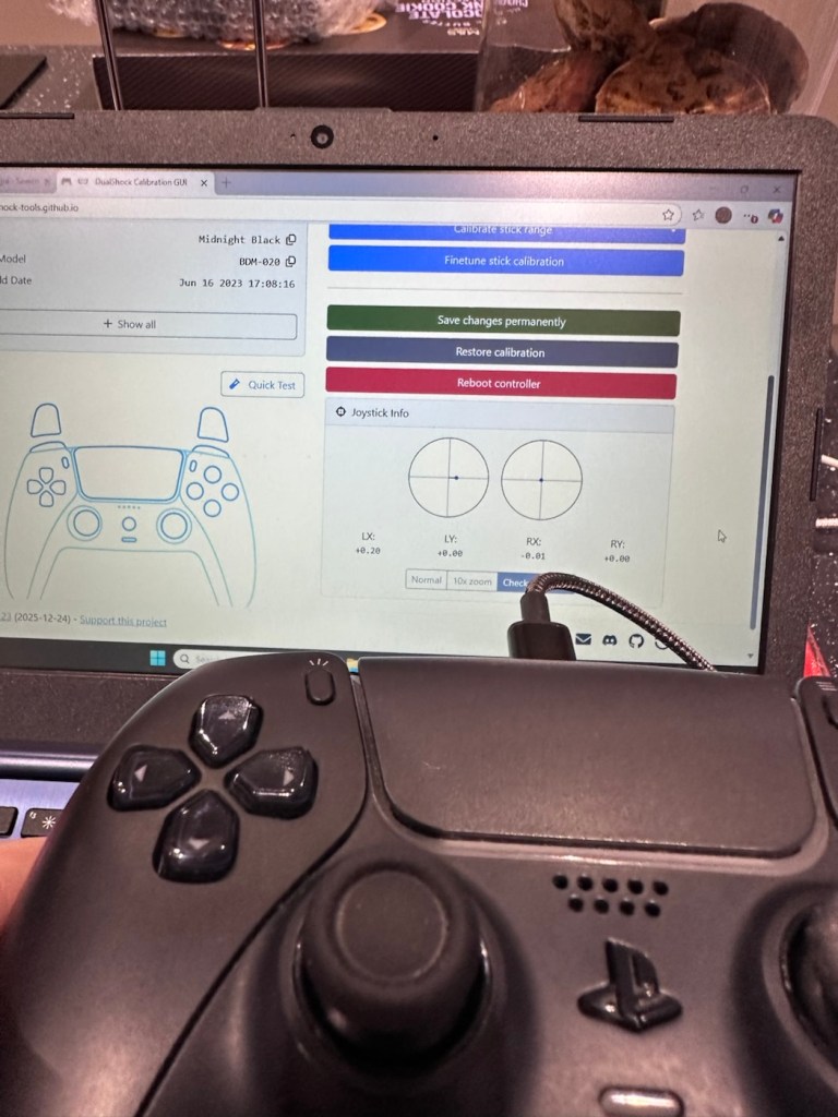 And as stated the first controller, the black one has passed all of these tests. Impressive. The next tests are all centred around the two thumb pads, their return to centre position and their all around circular motion and their calibration.