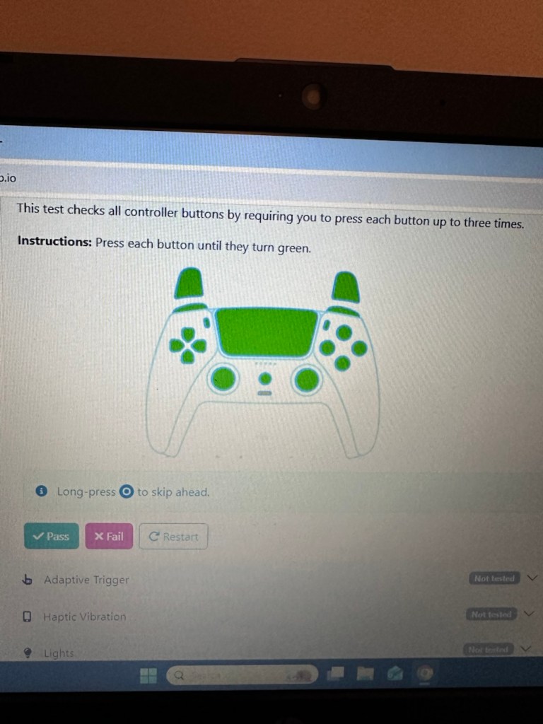 • Haptic Vibration: this tests the vibration motors in the controller, if it’s working then it’s a pass