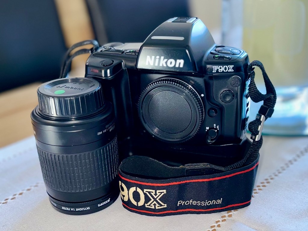 The Nikon F90x is a 35mm autofocus SLR using Nikon’s F lens mount. It was targeted toward the advanced amateur or prosumer; its feature set is comparable to that of Nikon’s current D100/200/300 SLRs. The name N90s was used for marketing in the United States; everywhere else, the camera was called the F90x. This camera was also used as the base for the Kodak DCS 400 series of digital SLRs.