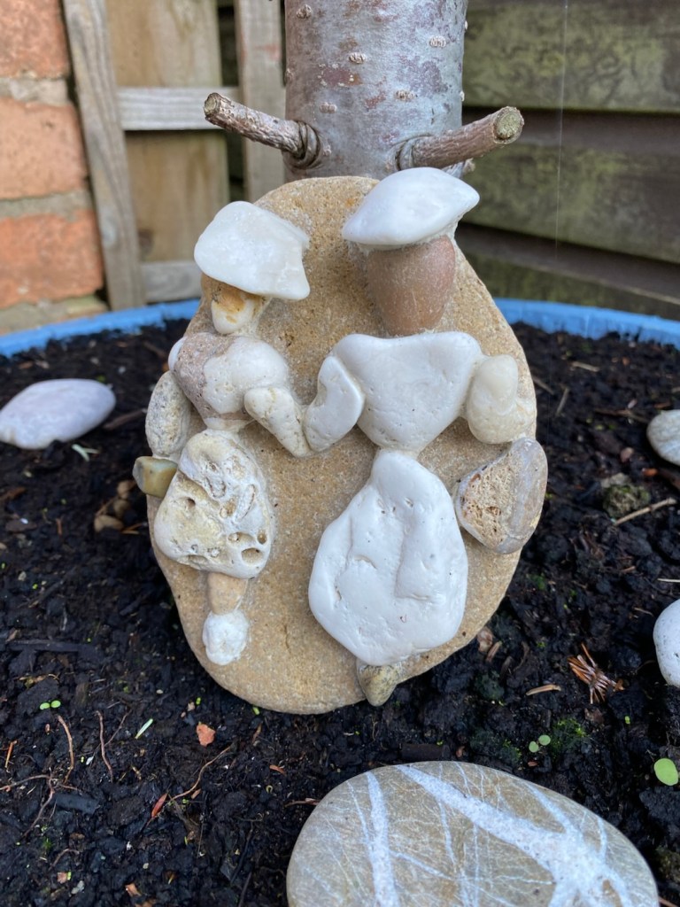 This stone now has pride of place in a flower barrel in our garden. A constant reminder of warm, pleasant days in our happy place.