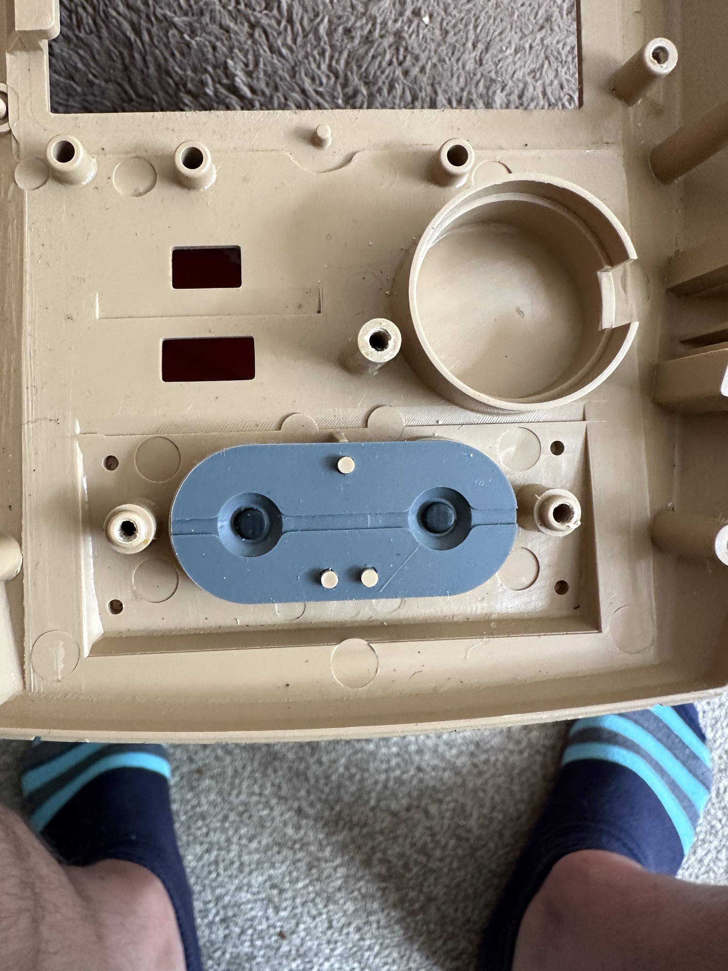 With these in place I get an intermittent buzz and a light, it appears the capstan control and operation dial that I mentioned earlier was loose, and has intermittent contact issues, it will need removing and cleaning then reseating.
