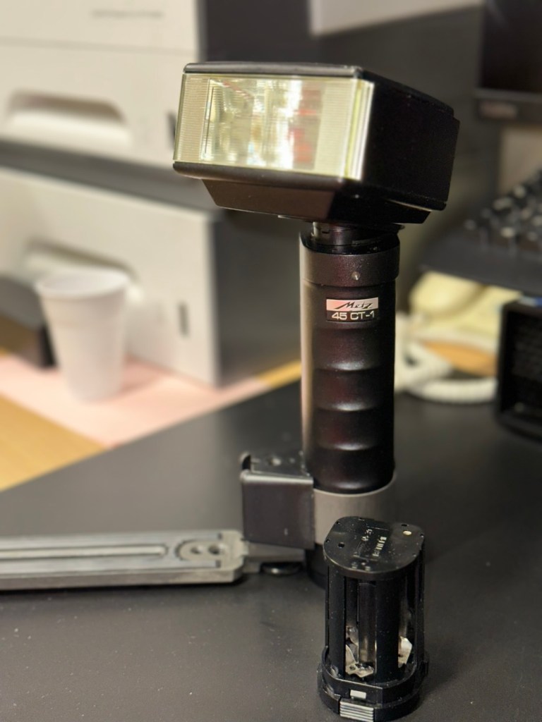 One of the easiest and least invasive, and therefore safest ways to start investigations, to look for a remedy, is to first get a nice fresh batch of alkaline batteries. With these in place within the unit, turn the flash power switch on and just leave it like that for anywhere between 2-8 hours. It has been known in the past, to act like a trickle charge as that flash capacitor has not been active for god knows how many years, it kind of revives it. It sometimes works, more often than not it doesn’t. But it’s worth giving it a try. So here goes. If this doesn’t work then our only other option is to get the unit opened up and to replace that beast of a flash capacitor.