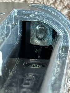 I have put batteries in and the good news is that there is life of sorts. By that I mean there is a distorted noise from the speaker and a flash of life on the screen and then it dies. Wiggle the start button and there are more flashes of life but that’s it. No other buttons seem to be working. I’m not tempting fate but this could be a case of the unit being just as filthy inside as well as out. But knowing my luck this will not be the case. Let’s have a look inside.