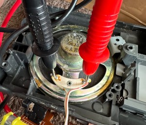 Now everything is clean, I resolder the battery contacts, check the buttons and all appears well, I attach my bench power supply, give it 6v, turn on the switch and we have life. No intermittent issues and a very loud sounding speaker. I turn this off and look at getting it all reassembled.