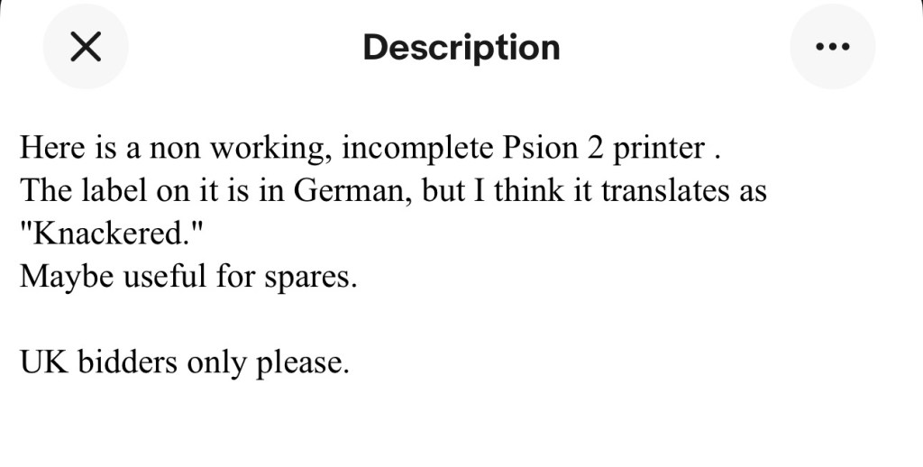 However I know it dosen’t say Knackered as I believe that is “ Beschadigt” or “Geschlaucht” and that only translates as damaged! Which doesn’t quite fit the scenario does it?. Or maybe it does!