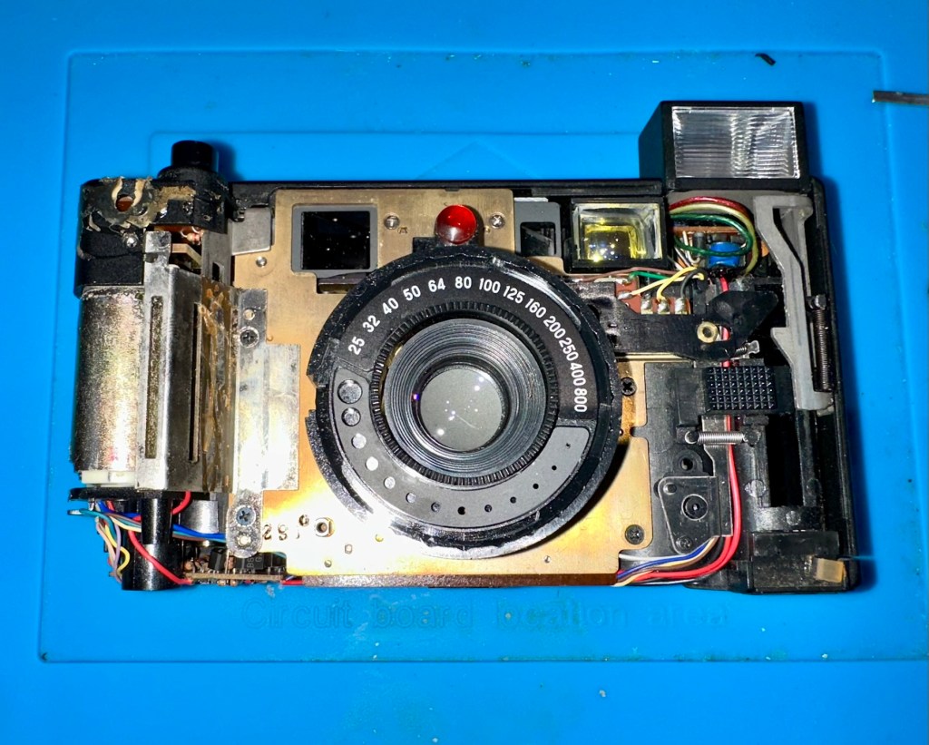 I’ve used the original fascia, rear door, focussing beam and flash capacitor from the first failed unit, and apart from a few bits of soldering, plenty of contact cleaner and some silicone grease, I’ve revitalised a failing motor and it is now working as it should. I forgot to mention I used some graphite on the shutter leafs to “lubricate” them. All optics cleaned and camera has been tested without film and is working just fine.