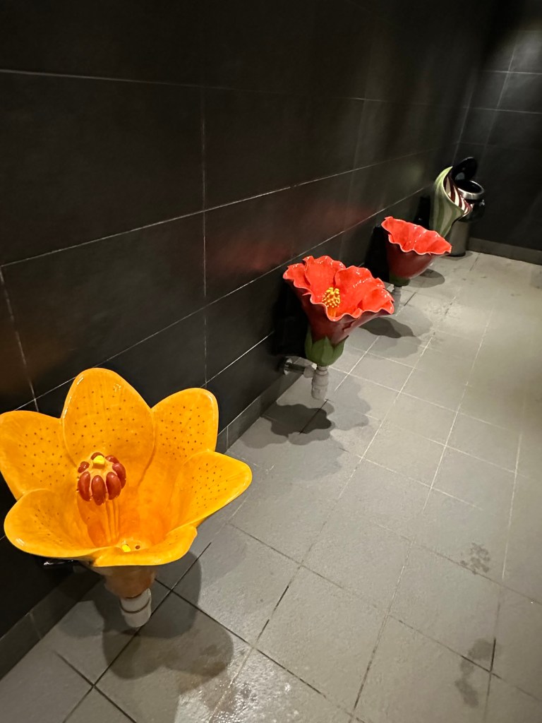 I walked in this toilet and was instantly hit by the wow factor. Yes these beautiful sculptured ceramic flowers are in fact gentleman’s urinals. Apparently according to my wife all the hand sinks in the ladies are just as well sculpted.