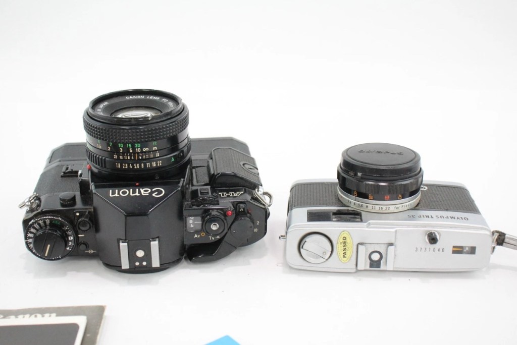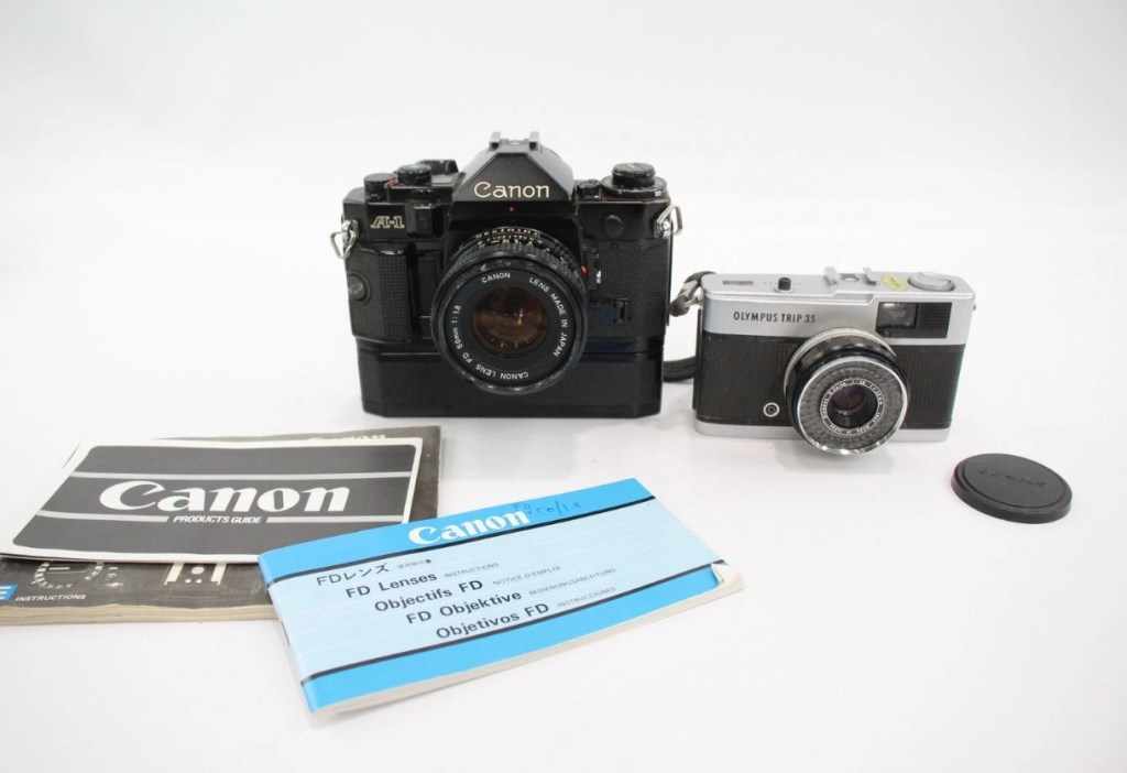 Today I’ve probably made the best purchase off of an auction site that I have ever made previous. I’ve been following a number of Canon A1s lately and they have all been going in the £120+GBP bracket, some even higher than that. Today I have lost out on two that sold for £93 for a damaged body and one for £121 that was just a body but of a much better quality. This particular auction I was watching was for an untested duo of cameras, a Canon A1 as well as an Olympus Trip 35mm. The Olympus alone normally commands the high £80GBP range and both of these were in this particular auction. I was just watching as this was going to sky rocket in my opinion, two good cameras from a respected seller who I have used before. Two minutes from the auction end, bidding was sat at £39GBP and I thought that any second now the price was going to go crazy, especially in the last 30 seconds. I put in a max bid of £55GBP for the lot, as I pretty much knew it would sail past that amount and go for a price in the £150-£200 price range. I hit the bid button with 20 seconds left on the auction….