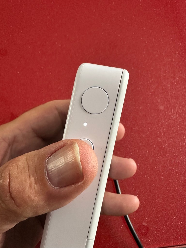 The red light to show the camera has powered up lites up when the button is pressed to extend the lens and turns the camera on .
