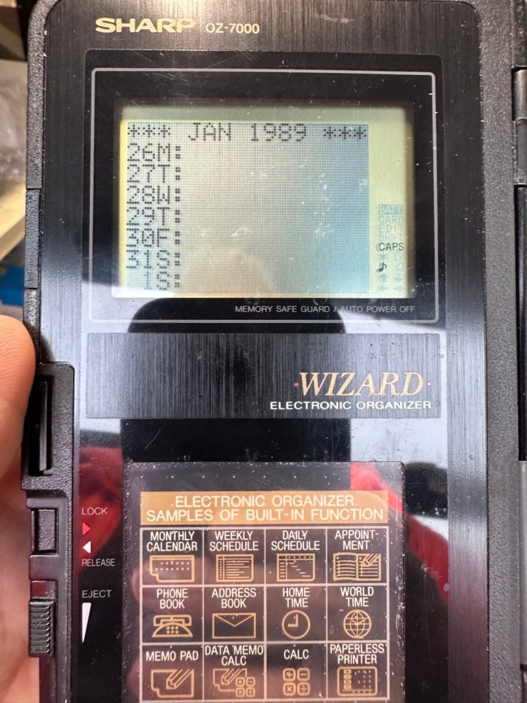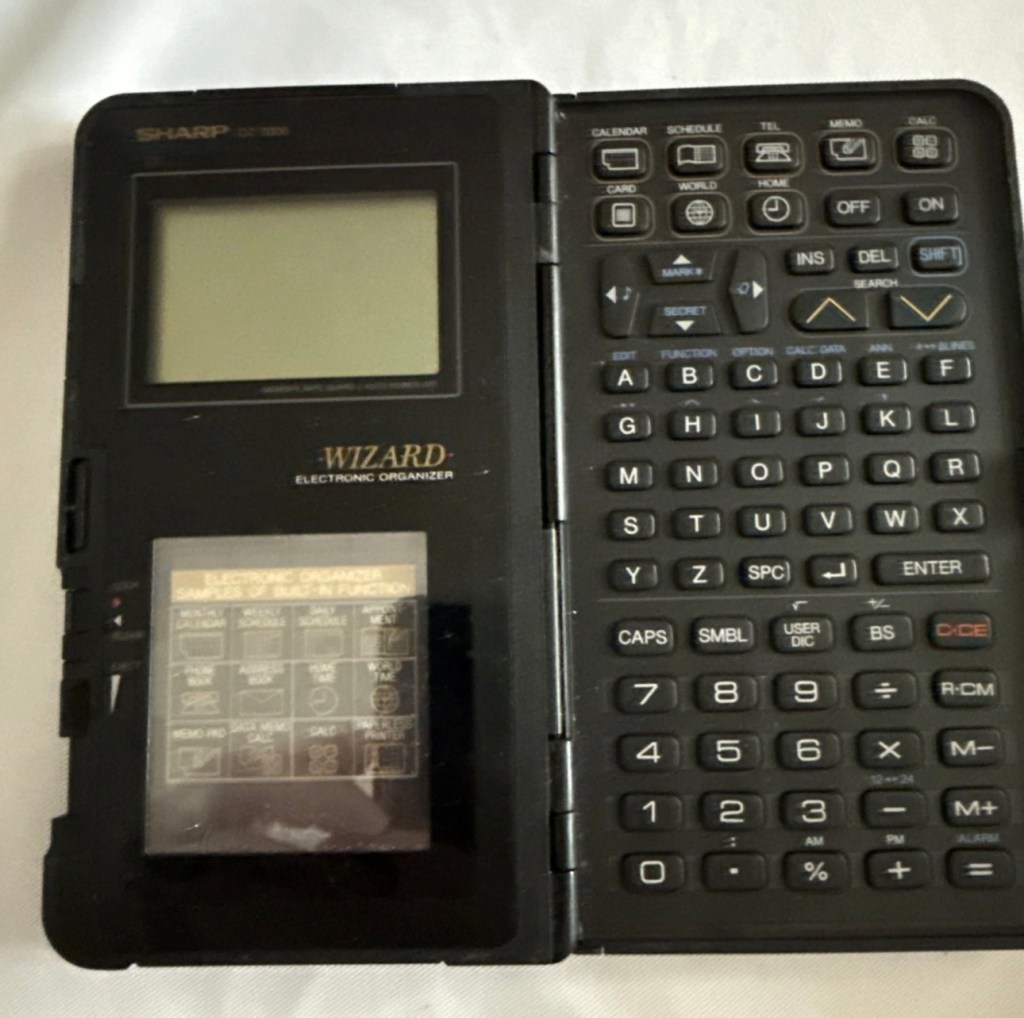 The Sharp Wizard series, introduced by the Sharp Corporation in 1989, was among the first electronic organizers and a precursor to personal digital assistants (PDAs). The debut model, the OZ-7000 (known as the IQ-7000 in Europe), combined organizer functions with an IC Card expansion system, allowing users to install software and memory cards. Over time, Sharp refined the series with larger displays, increased memory, and enhanced features, such as infrared communications port for wireless data transfer, touch-sensitive displays, and clamshell designs.